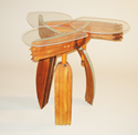 (see Spring Table). This is an early piece out of “new” wood, wood without a utilitarian history, rather coming from a living history and a harvesting/economic story. In giving an animal form to the piece I tried to evoke both Piaget’s animism and spiritual animism. The simian form I believe arose as a metaphor of getting to the root of making, as if getting to my phylogenetic roots.