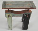 While referencing a child’s hobby horse, and the bygone time of Tonto’s paint horse “Scout”, this little multicolored side table, like all of us, bears its experiences and scars visibly and invisibly, inviting the viewer in to try to reconstruct its history.